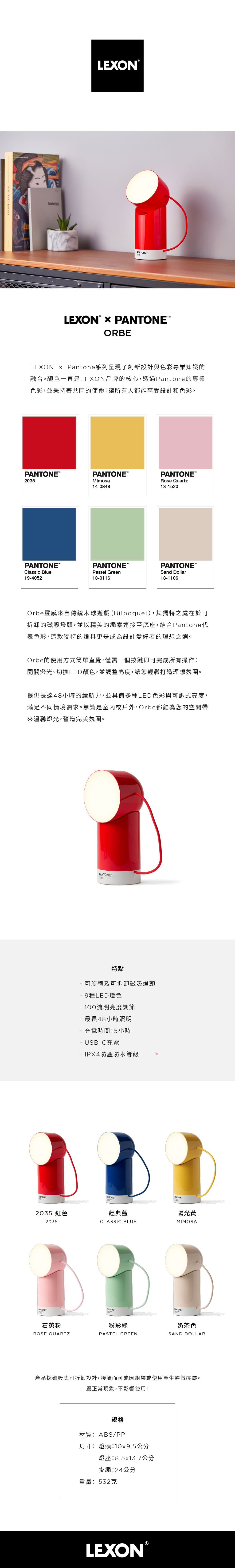 LEXON x PANTONE - ORBE 無線桌燈-【多色可選】